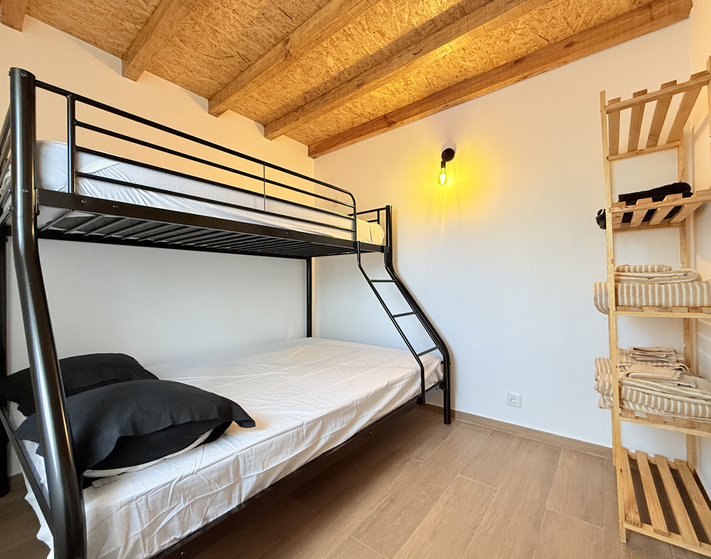 1 quarto com beliches (cama de casal e cama individual)